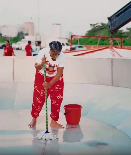 A video of celebrity chef, Hilda Baci washing the massive pot for her jollof rice Guinness World Record record attempt at Eko Hotel and Suites in Lagos has gone rival.