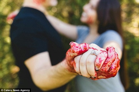 Daily Mail reports that Shi Jaramillo, 27, and fiancé Patrick Reetz, 37, from Austin, Texas, planned the murder-themed shoot to represent their undying devotion to one another.