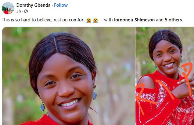 The circumstances surrounding her d3ath remain unclear at the time of filing this report but it was gathered that authorities have commenced investigations to uncover the cause.