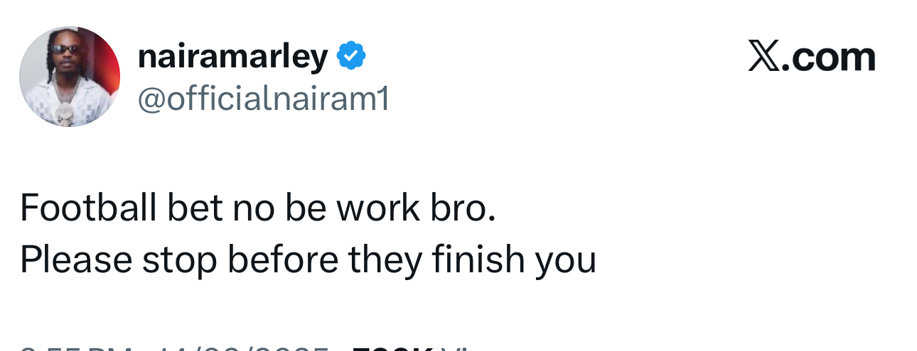 “Football bet no be work bro. Please stop before they finish you.”