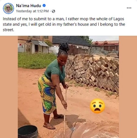 “Instead of me to submit to a man, I rather mop the whole of Lagos state and yes, I will get old in my father's house and I belong to the street,” she wrote in a Facebook post on Sunday.