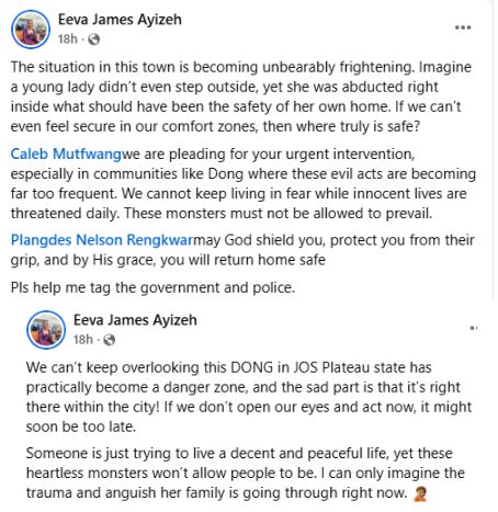 “The situation in this town is becoming unbearably frightening. Imagine a young lady didn’t even step outside, yet she was abducted right inside what should have been the safety of her own home. If we can’t even feel secure in our comfort zones, then where truly is safe?,” one Evah James Ayizeh, wrote.
