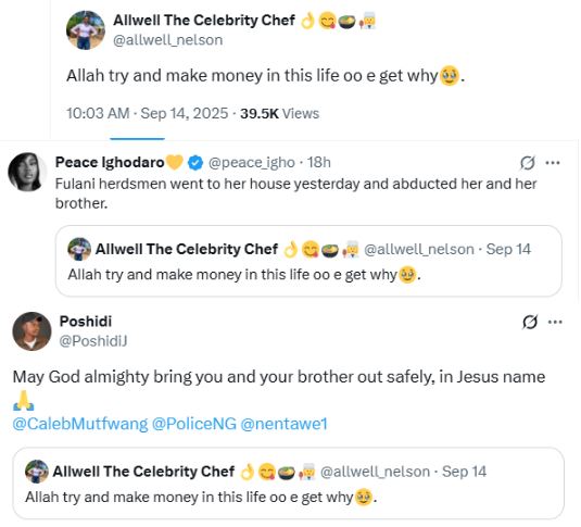 Meanwhile, friends and acquaintances have expressed fear over the safety of the victim, calling on the state governor and security agencies to rescue her.