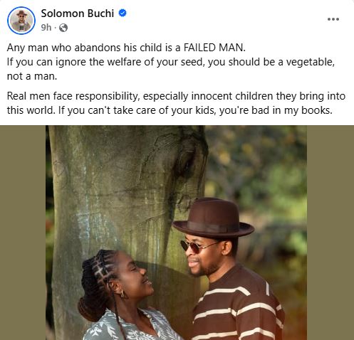 Solomon Buchi, the popular Nigerian social media commentator, talked about men who abandon their kids.