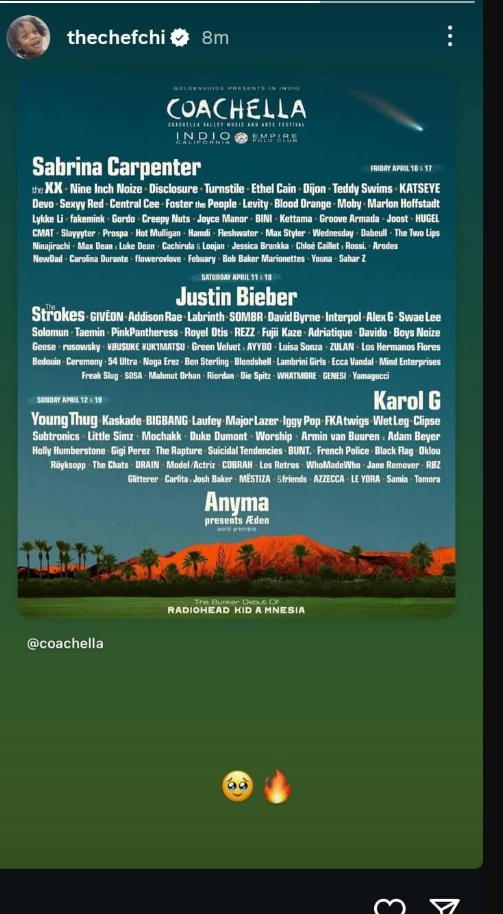 In a post on Instagram story, Chioma proudly shared the festival poster on her Instagram story, adding crying and fire emojis.