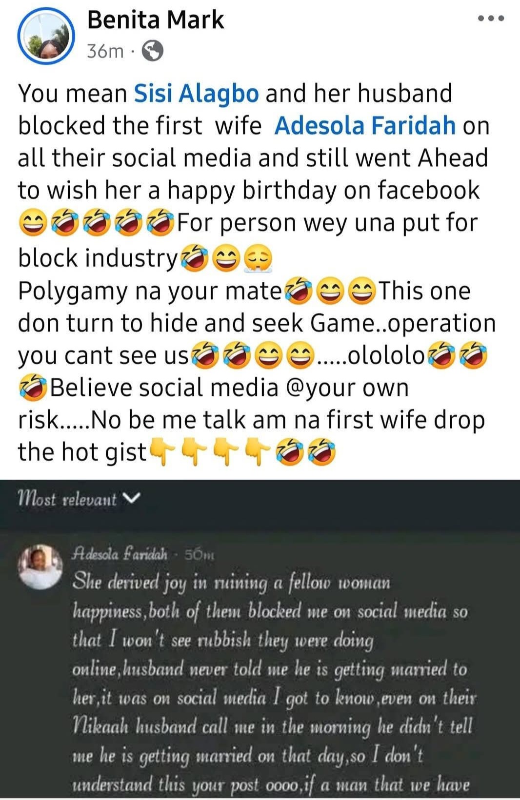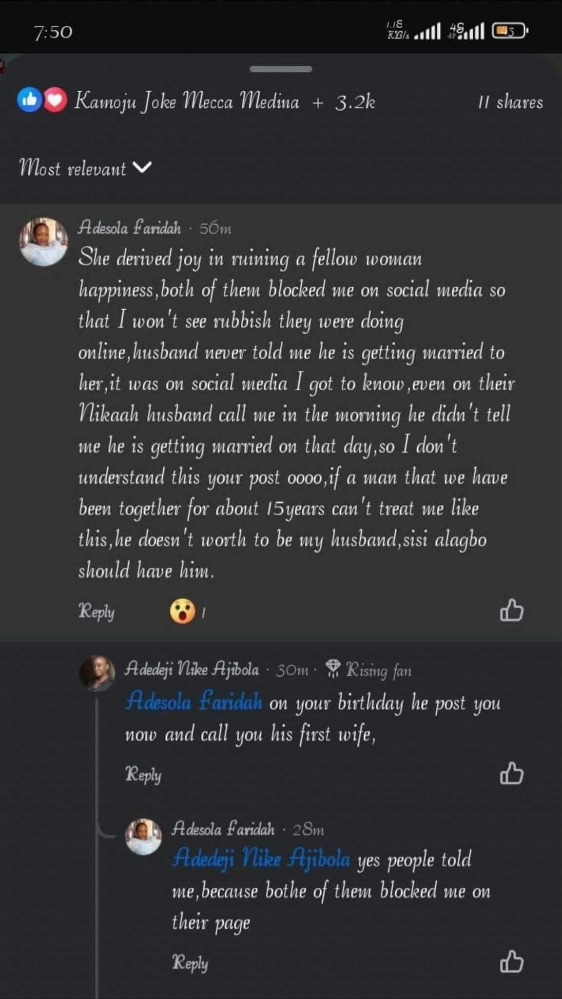 Both husband and new wife went ahead to post the first wife on her birthday, just 4 days ago, supposedly to give other Facebook users the impression that they had her blessing to get married.