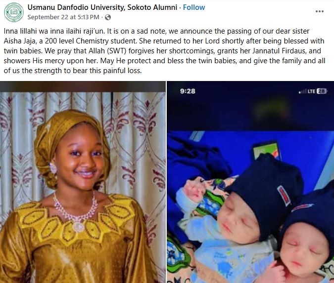 The Usmanu Danfodiyo University, Sokoto (UDUS), is in mourning following the de@th of Aisha Umar Jaja, a 200-level Chemistry student.