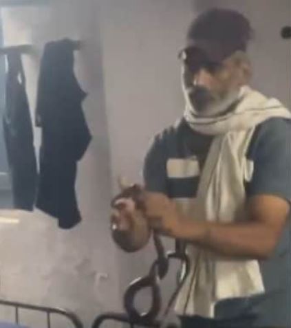 Footage shows him approaching and grabbing the cobra with bare hands, without gloves or any safety gear.