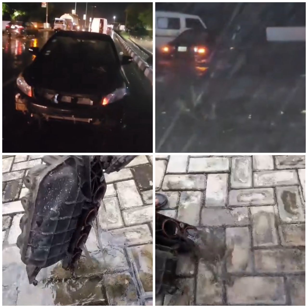 ‘’How Lagos Flood finished my car and knocked the engine completely. Watch the slides to the end. This happened at Gbagada road linking the 3rd Mainland bridge opposite Burger King. The flood was so much that when I came down from the Car, the water was almost by my neck. I was literally swimming to cross the road and falling into different deep gutters because the floor covered the gutters. I was lucky not to get drowned but got injured in the process. To push the car out of the flood, the Agberos collected N20,000 from me despite all the begging. They showed Zero Sympathy and said its the only way they can see money to eat, and their prayers have been answered. The towing vehicles made serious money towing numerous cars. I spent N95,000 to tow the car back home and this is with serious begging and haggling. Mechanic checked the car and confirmed that the Engine has Knocked. I Inquired about a new Tokunbo Engine and I was told between N1.8million to N2.5million. I am in tears!!! Which kin wahala be this''