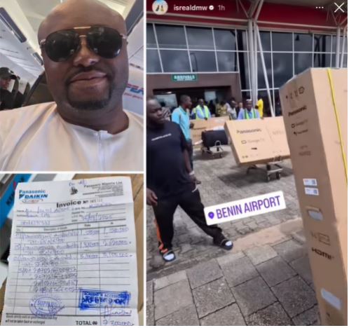 Israel in a video he shared online showed that he purchased three Big screen TVs valued at over N7 million in Lagos.