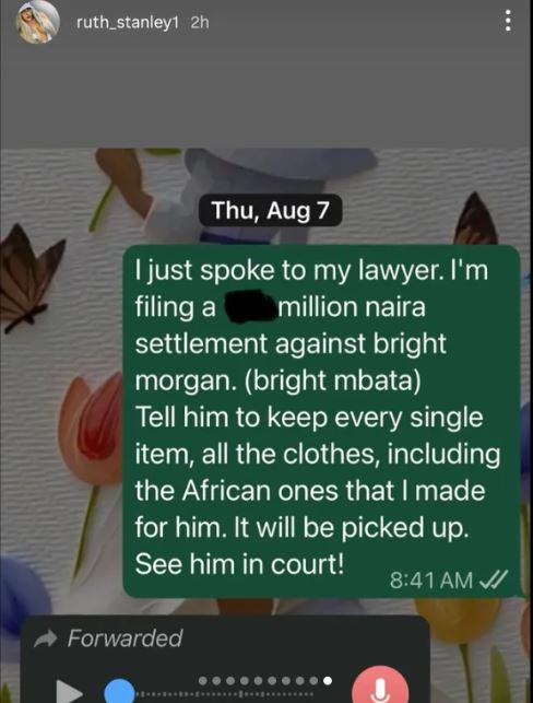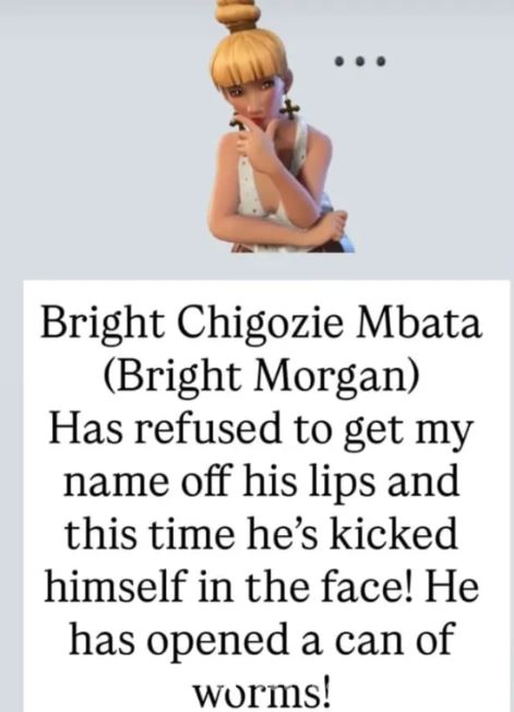 In a series of Instagram story posts, she accused Bright of repeatedly keeping her name on his lips during his media rounds, saying he had now “opened a can of worms.”