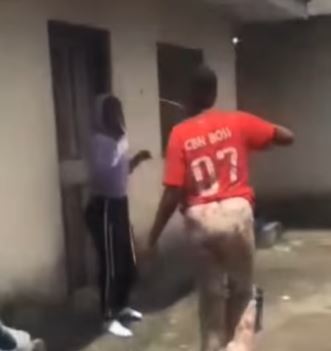 The video shows one of the girls flogging her and asking her questions about her interactions with her boyfriend.