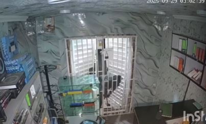 The shop owner was in his house when he watched the CCTV he installed in his shop and spotted the thieves attempting to break into his shop.