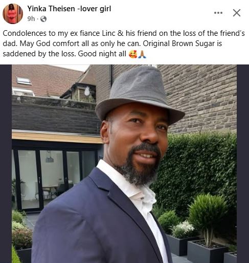 In a post shared on Facebook, Yinka expressed sadness over the demise and sent words of comfort to her ex-fiance as well as his friend.