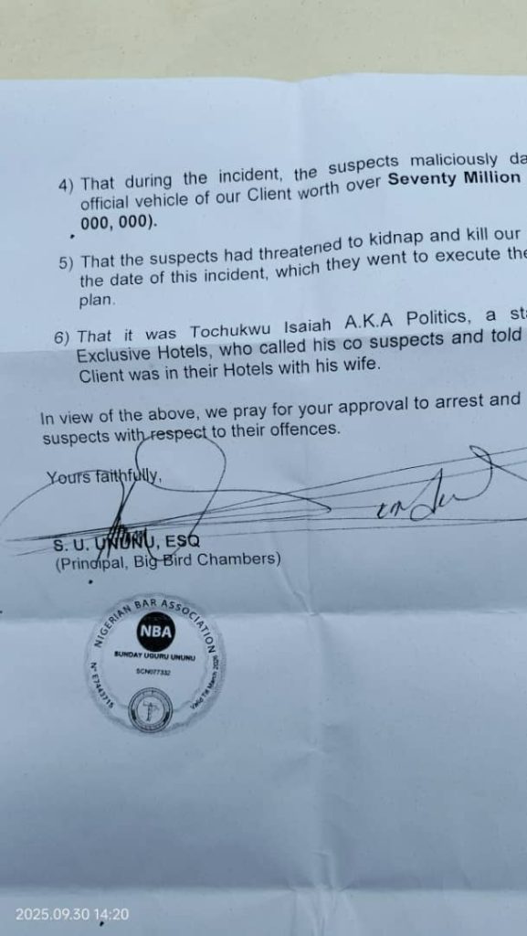 In a petition dated September 29, 2025, and signed by his counsel, Barrister S.U. Ununu, Odefa alleged that on Saturday, September 27, at about 10 p.m., a group of armed men launched a deadly attack on him at Panna Hotels, Oshiri Area of the state.