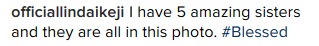 The self acclaimed richest and highest paid blogger not only in Nigeria but in Africa, shared photos of her siblings and captioned it, "I have 5 amazing sisters and they are all in this photo. #Blessed."