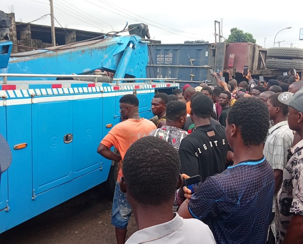 A witness, who blamed the crash on deplorable section of the road, said: “The trailer was navigating the bad road when the container suddenly landed on the Keke carrying four passengers.