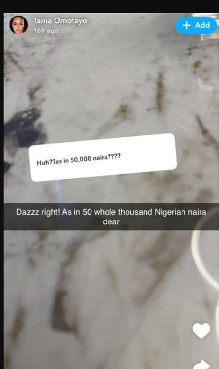 Nigerian entrepreneur and fashion designer, Tania Omotayo has taken to Snapchat to lament the high price of goods in Nigeria.
