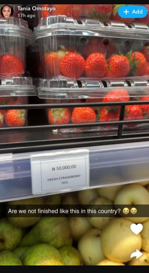 Taking to Snapchat, Tania revealed she saw strawberries going for as high as N50,000.
