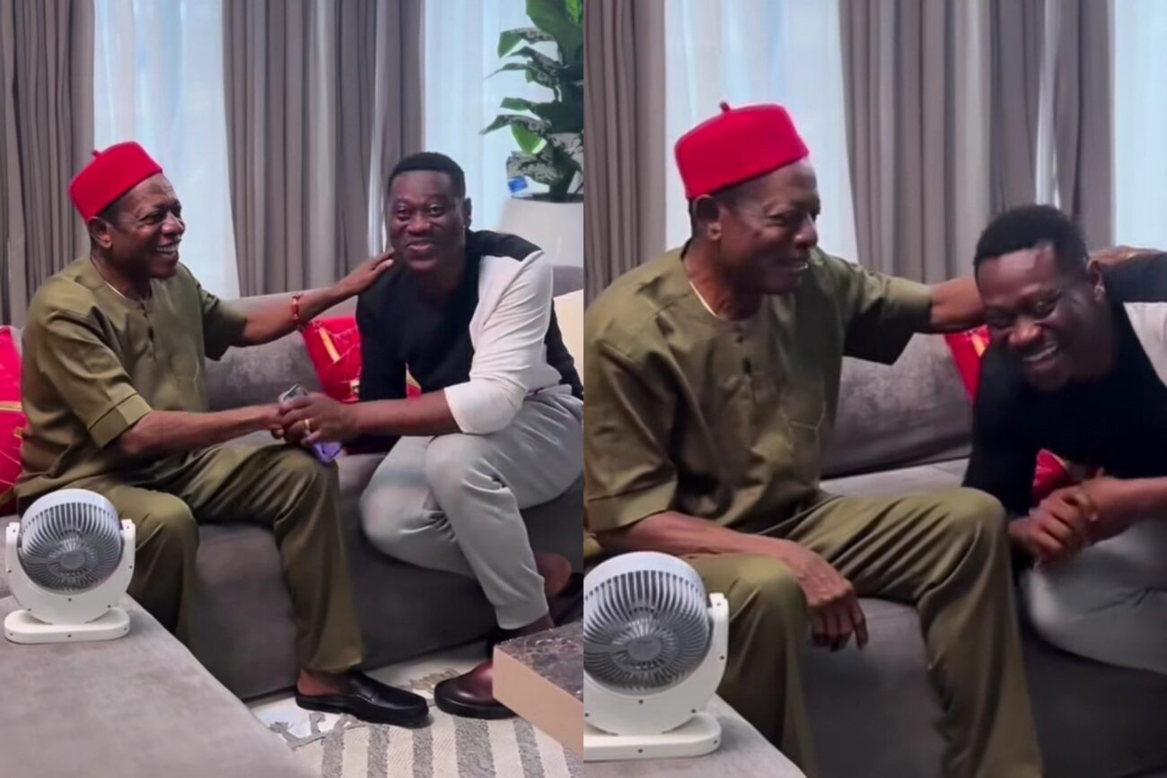 Sharing the video, Adedimeji wrote: “It was an honour to meet the legendary Nkem Owoh @osuofia_nkemowoh on set.