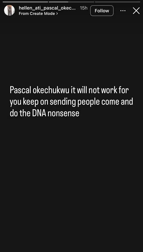She wrote: “Pascal Okechukwu, it won’t work for you. Keep sending people to come and do that DNA nonsense.”