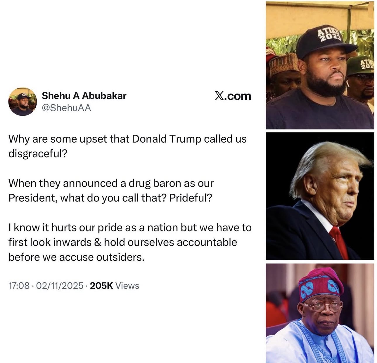 While some Nigerians have condemned Trump’s statement as an affront to national sovereignty, Shehu Abubakar argued that the outrage is misplaced, suggesting that Nigerians should instead reflect on the country’s leadership and governance challenges.