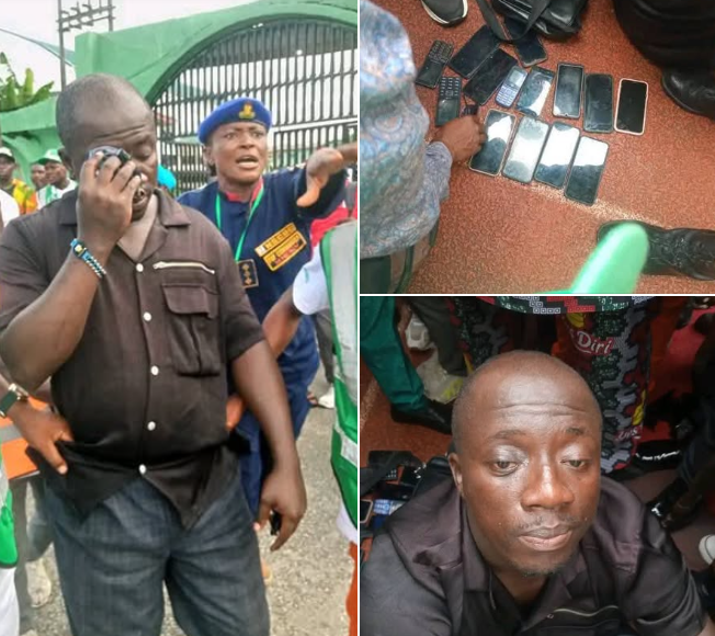 A suspected serial phone thief identified simply as Francis has been arrested at the Samson Siasia Sports Complex, Yenagoa, venue of the defection ceremony of Governor Douye Diri to the All Progressives Congress (APC).