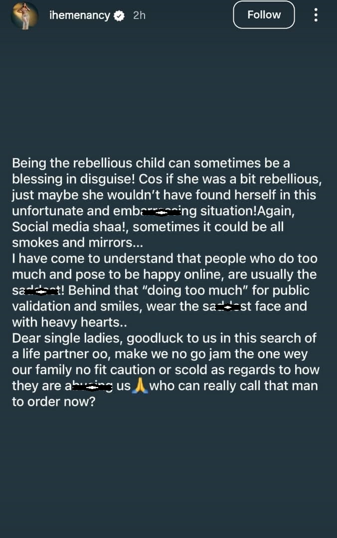 Nigerian actress Nancy Iheme has given her opinion on the ongoing marital crisis between Regina Daniels and her husband, Senator Ned Nwoko.
