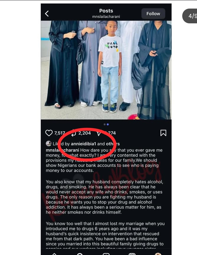 Annie Macaulay has been slammed after liking an Instagram post by Laila Charani, one of Ned Nwoko's wives.