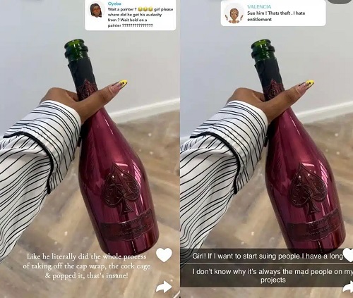 Nigerian influencer and model, Diana Eneje has lamented online after revealing that a painter working at her home drank her 3-year-old bottle of Ace of Spades champagne worth N950,000.