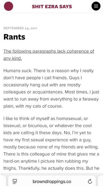 The most widely circulated portion of the blog includes explicit commentary in which the writer describes being “homos3xual, or bis3xual, or bicurious,” and goes on to narrate s*xual fantasies involving a male colleague.