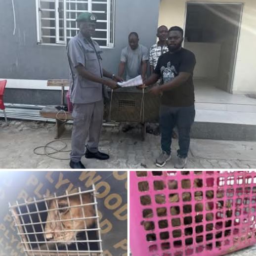 The Seme Command of the Nigeria Customs Service (NCS) has intercepted a wildlife trafficking attempt, successfully rescuing a lion cub and two patas monkeys.