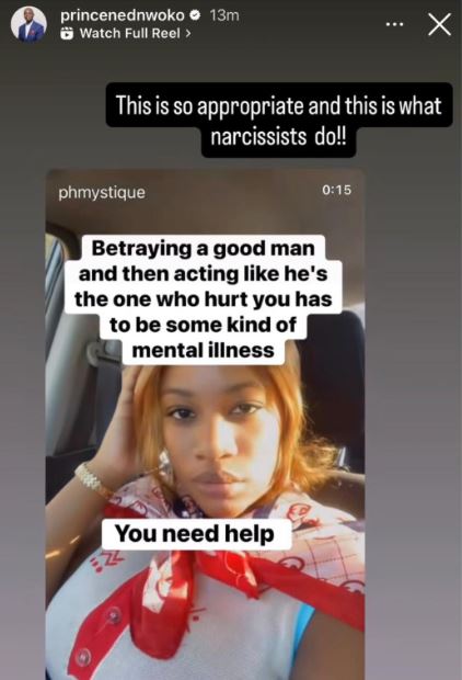 The lawmaker re-shared a post describing how “narcissists betray good men and then act like he is the one hurting them.”