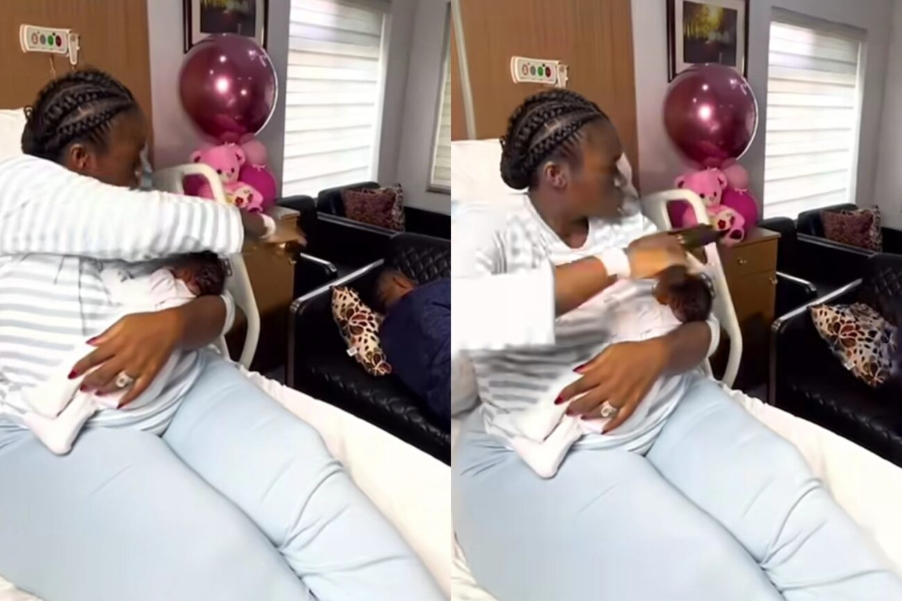In the clip, she nursed her newborn daughter while her husband slept soundly beside her—completely unbothered.