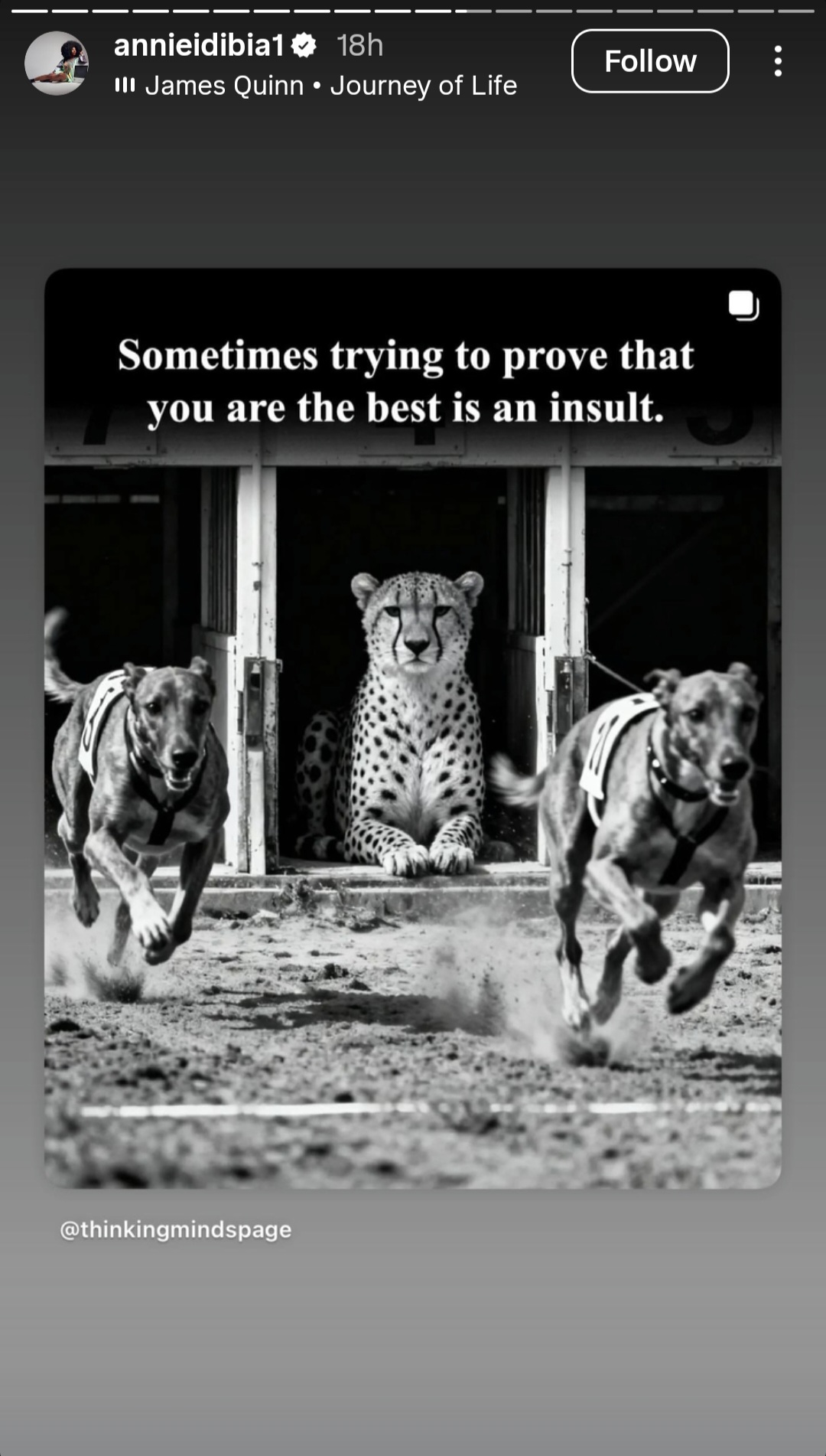 One read: "Sometimes, trying to prove that you are the best is an insult."