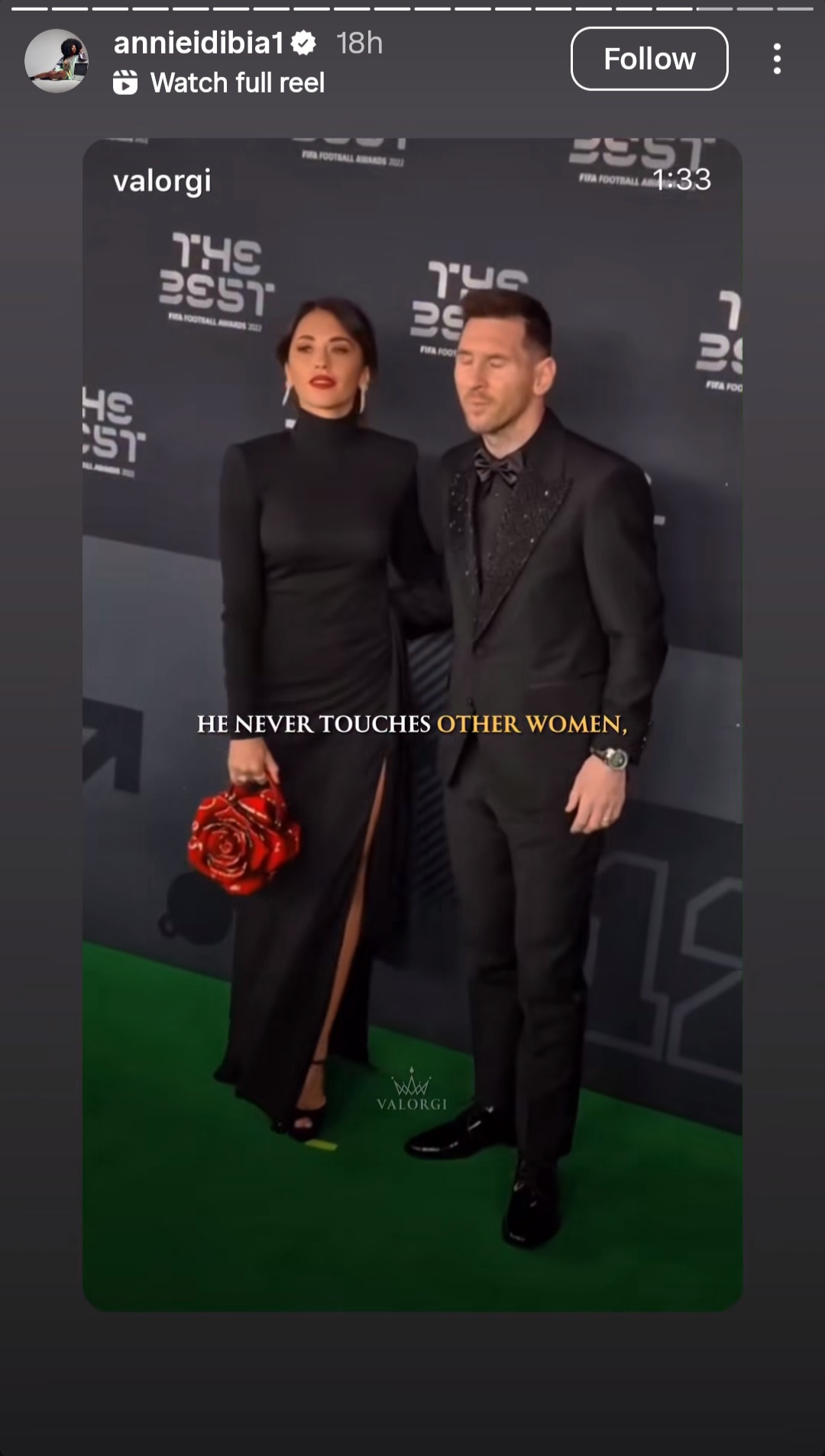 She also shared a video highlighting how Lionel Messi is considered a responsible man because of how he respects his wife by keeping a respectful distance from it her women.
