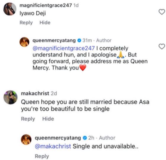 BBNaija star Queen Mercy Atang has made a revelation about the current state of her marriage.