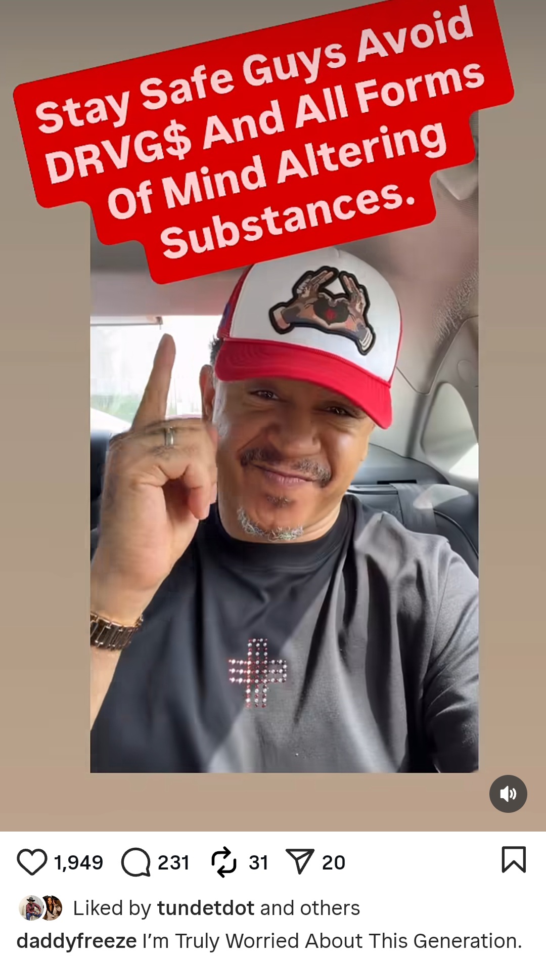 He wrote: "Stay safe guys. Avoid drvg$ and all forms of mind altering substances."