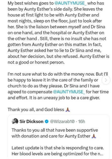 Many people on social media quickly rallied round to raise money for her treatment. The donation was anchored by Wisdom Obi-Dickson, a media personality known for charity activities, especially on X with the username @Wizarab10, who successfully helped raise over N 30,776,252 as of December 1st, 2025.