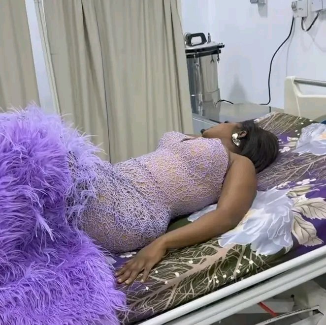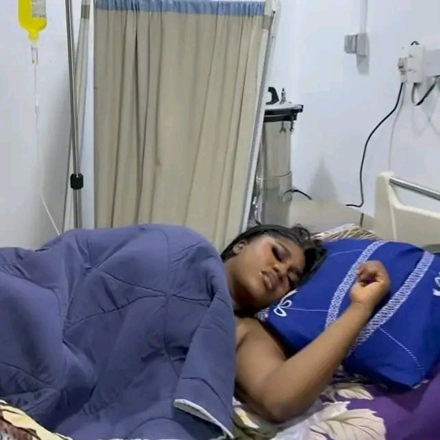 Clips from her page showed her on a hospital bed with IV fluids and a blood pressure monitor.