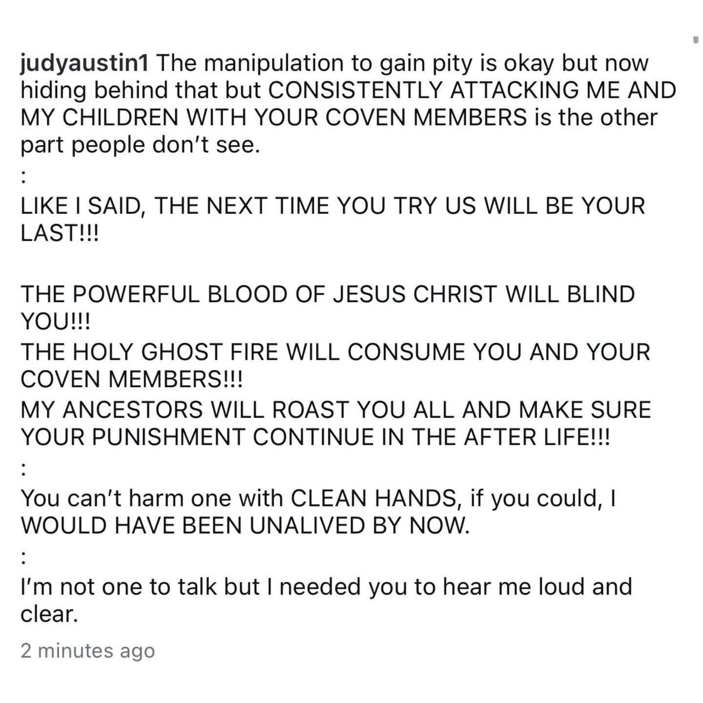 Earlier, Tori News reported that Judy had made a post claiming that a “witch” was targeting her, using manipulation to gain sympathy.