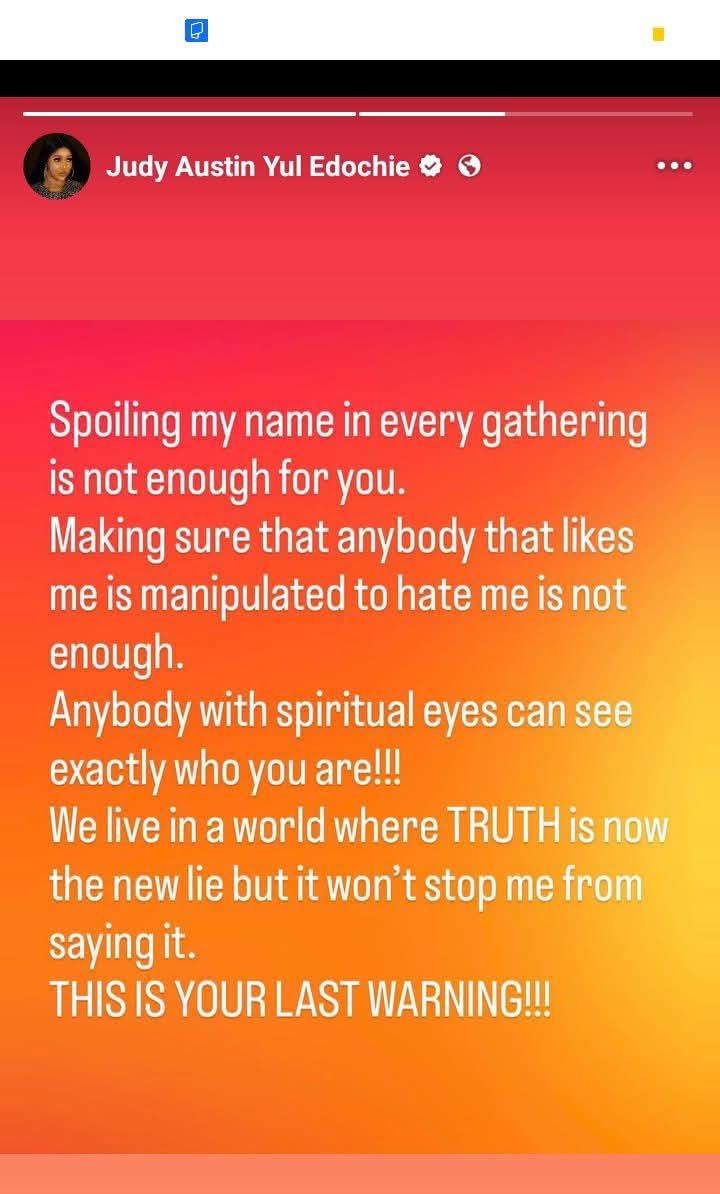 Nollywood actress Rita Edochie has reacted to a recent post by her junior colleague, Judy Austin.
