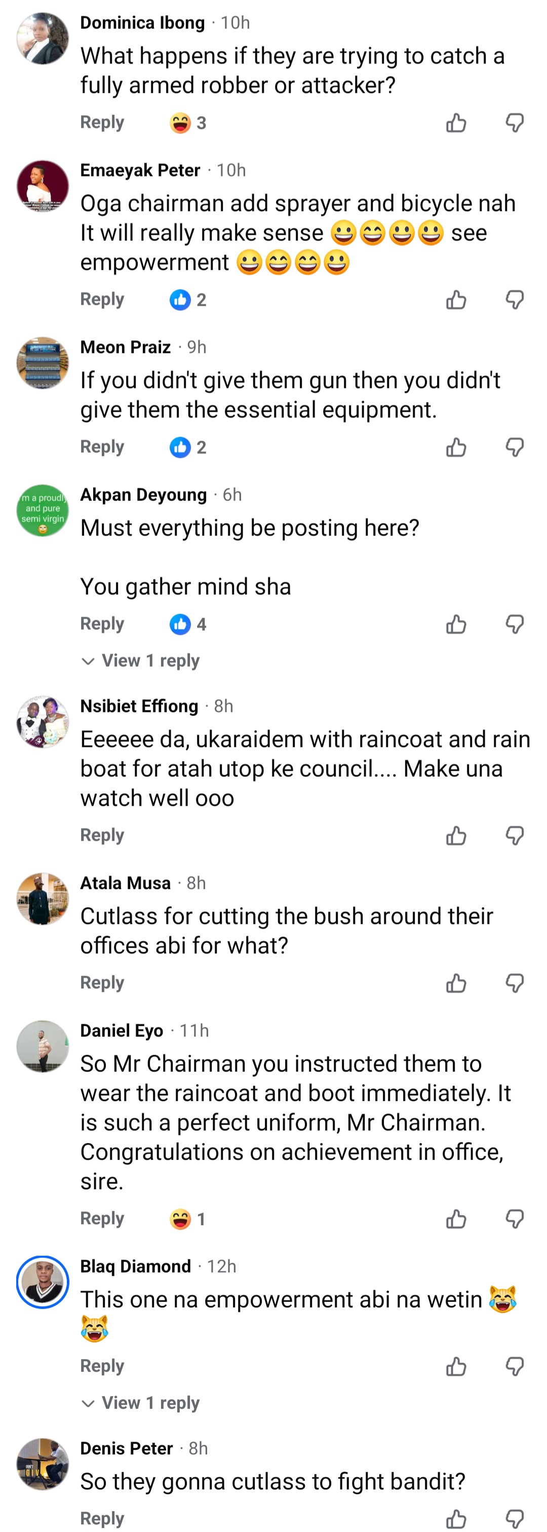 Ntiedo Effiong Usoro, Chairman of Essien Udim Local Government Area in Akwa Ibom State, has come under fire after proudly showcasing the equipment he supplied to a local security unit to combat insecurity.
