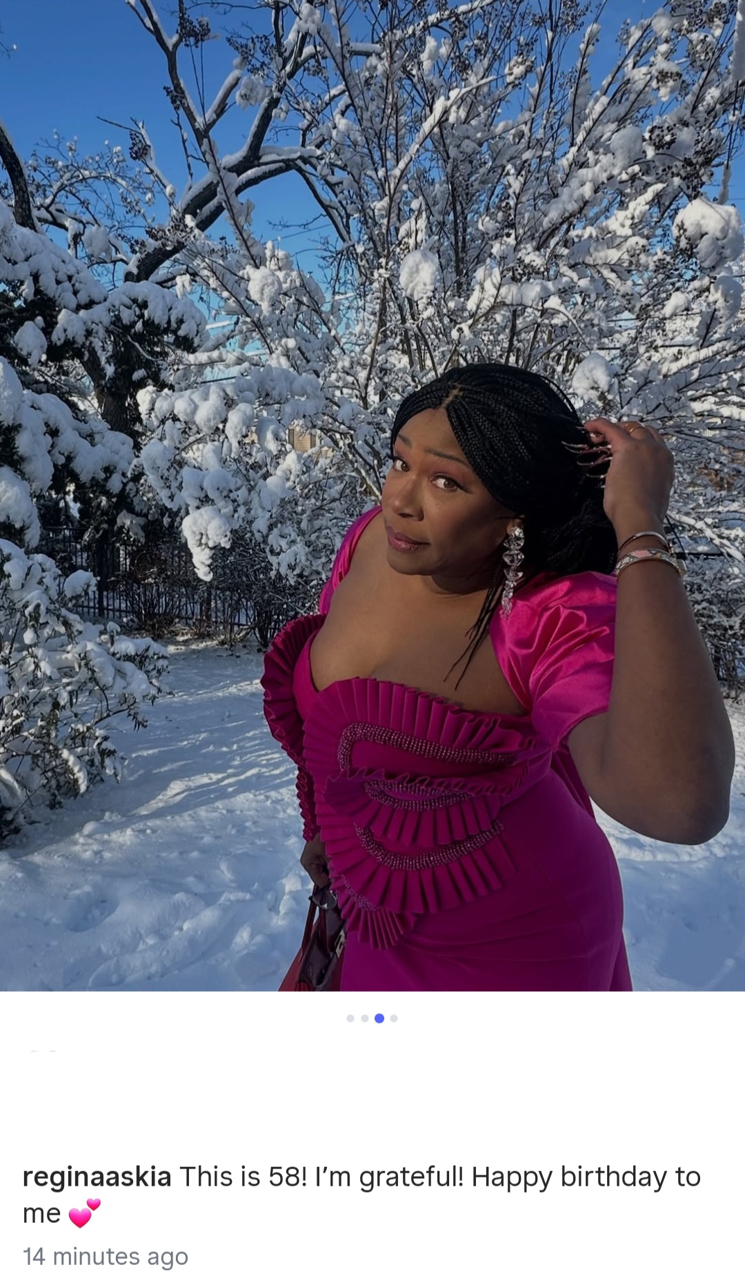 Accompanying the photos, Regina wrote a heartfelt caption: "This is 58! I'm grateful! Happy birthday to me."