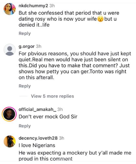 However, some Nigerians took it as a subtle dig at his ex-wife and mother of his first son, Tonto Dikeh who on Sunday, December 14, testified in church about how God delivered her from the spirit of anger and has given her peace that she cannot explain.