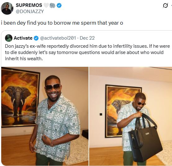 The drama began when the X user claimed Don Jazzy's ex-wife divorced him because of infertility issues.