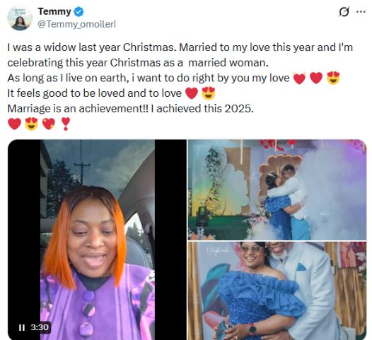 "As long as I live on earth, I want to do right by you my love. It feels good to be loved and to love. Marriage is an achievement!! I achieved this in 2025,” she wrote.
