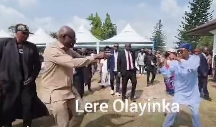 Nyesom Wike, the Minister of the Federal Capital Territory (FCT), was seen in a viral video on Saturday performing a traditional wrestling dance alongside former Deputy Speaker of the House of Representatives, Chibudom Nwuche.