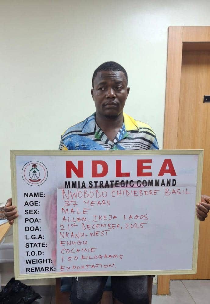 The statement read, “Three cargo agents: Jubrin Firdausi Hassana, Kuku Daniel Oluwasegun, and Igwe Chioma Jane, involved in the attempt to export the consignment to the UK, were swiftly arrested on Saturday, 20th December 2025, before further investigations unravelled 37-year-old Nwobodo Chidiebere Basil as the mastermind. He was arrested in a follow up operation on Sunday 21st December at a popular relaxation centre in Ikeja where he went on a date with his girlfriend.