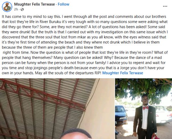 According to reports, River Buruku is notorious for its strong currents and has recorded several drowning incidents in the past, particularly during festive seasons.